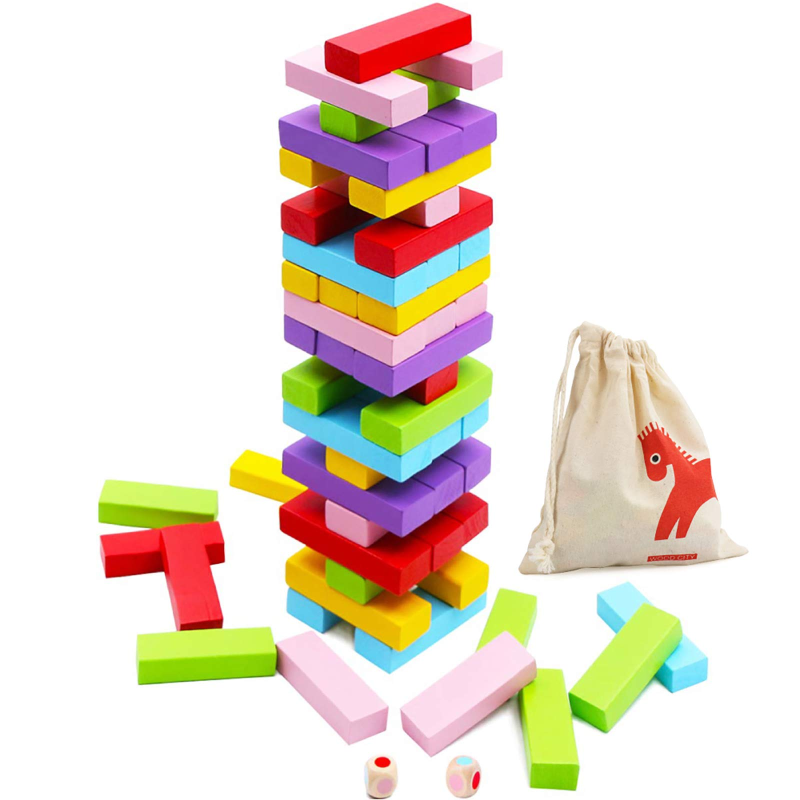 Custom rainbow Wooden Stacking Building Blocks Classic Board Game Balance Educational Toy Wood Domino Tumbling Tower