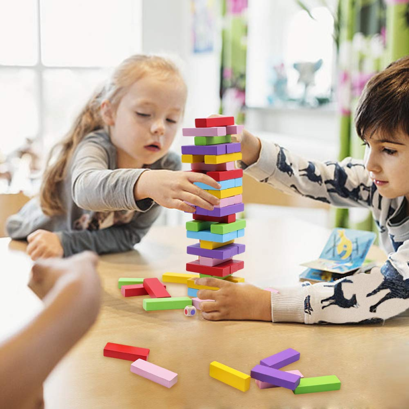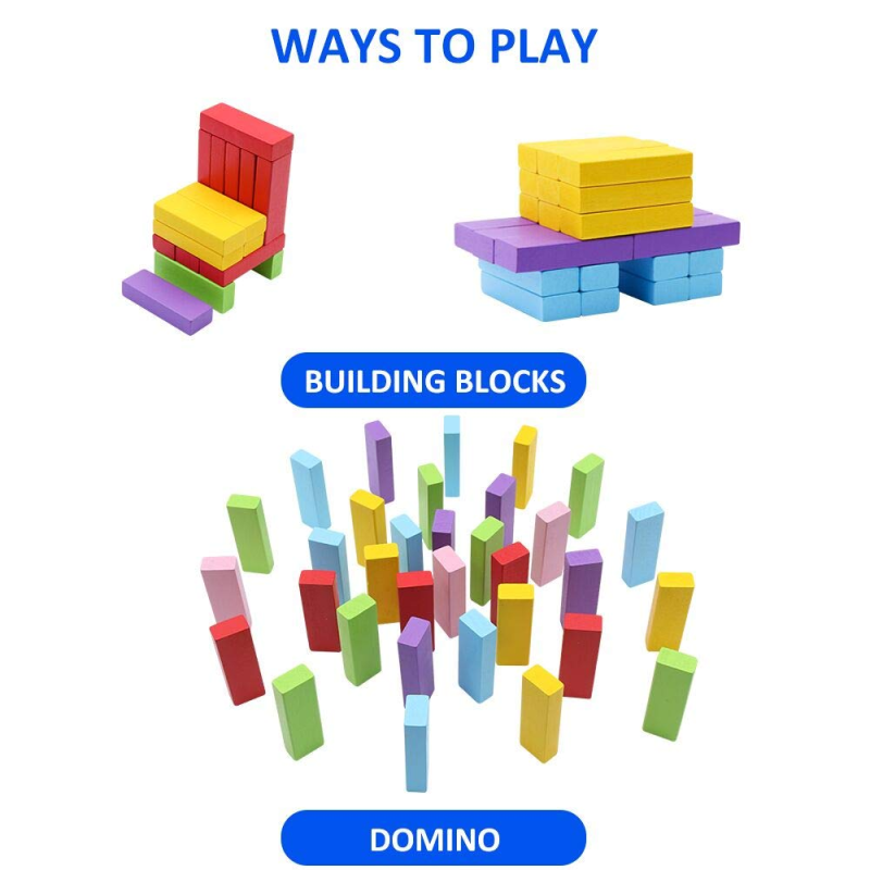 শিশুরা ব্লকগুলো একে অপরের উপর স্ট্যাকিং করে টাওয়ার তৈরি করতে পারে। এটি তাদের সন্তুলন ও মনোযোগ ক্ষমতা বাড়ায়। এছাড়াও, ডোমিনো স্টাইল টাওয়ার নামানো শিশুর জন্য আনন্দদায়ক অভিজ্ঞতা।